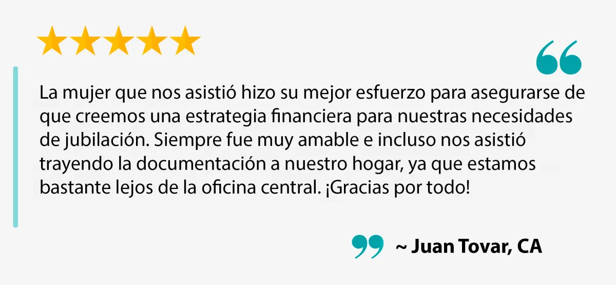 Vaqueros Insurance Consulting, lo cual puede no ser representativo de la experiencia de todos los clientes. Esto no garantiza el éxito financiero futuro.